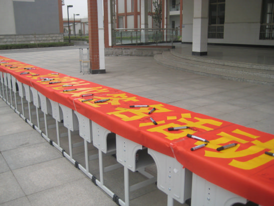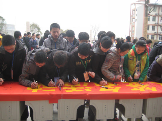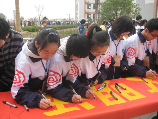 活动首先由施亚娟副校长讲话,她要求全体学生从现在做起,从身边做起,从点点滴滴的小事做起,养成良好的文明习惯,讲文明话,做文明事,当文明人,让这朵文明之花在和谐美好的淹中校园常开不败。随后,初一(2)班学生代表向全校学生发出倡议:争做文明礼仪知识的学习者,争做文明礼仪知识的传播者,争做文明礼仪活动的实践者。最后,千名学生在活动现场留下了自己的名字,并庄严宣誓:“我是一名淹中人,为了共建我们的文明校园,讲文明话,做文明事,遵守文明校园五要十不准,争当文明人!”