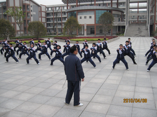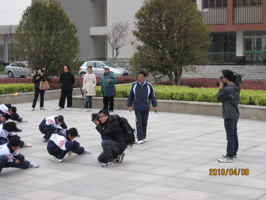 课间操时,随着扩音机里传出的号令,六艺广场千名学生频频亮出拳术招式,虽然身手尚显稚嫩,但练武场面却蔚为壮观。栏目组一行从不同的角度进行了详细的拍摄,并对学校领导、教练、学生进行了采访。通过编辑后,近期将在电视台播出。