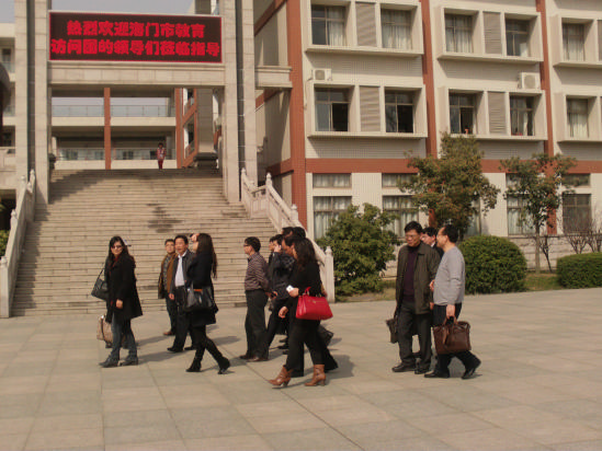 短暂的参观结束后,海门市教育访问团一行对我校优美的校园风景、优异的办学成绩及深厚的文化底蕴赞叹不已。