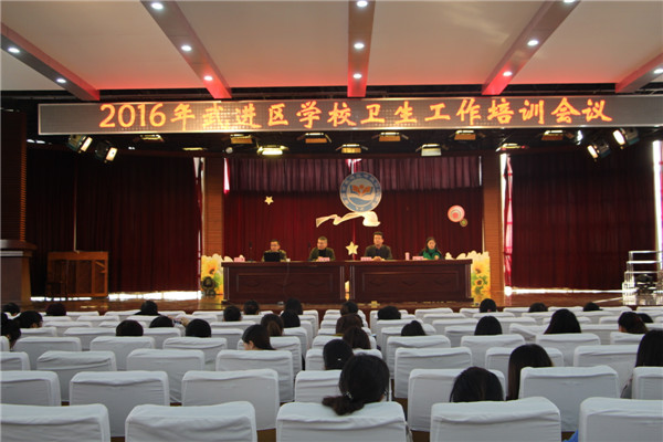 为进一步强化校园传染病防控、学校卫生监测及饮用水的安全管理等方面的工作,11月10日,2016年武进区学校卫生工作培训会议在淹城初中召开,会议由教育局基础教育科徐银主持,区卫计局监控科科长王伟庆、区教育局基教科副科长谭文杰、各学校的校医和保健老师以及各简易园所园长参加了本次会议。