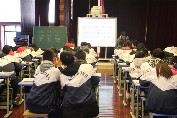 活动首先由淹城初级中学曹玲老师讲授《动物的运动依赖于一定的结构》一课。曹玲老师精心设计教案,尊重学生的已有知识和经验,放手让学生在课堂中探究学习,从视频导入到小组讨论再到观察实验最后归纳总结,学生在主动地探究中获得了更大的发展。曹玲老师教态亲切自然,教学条理清晰,引入设计精妙,学生总结精彩,整堂课学生参与度高,课堂气氛好。