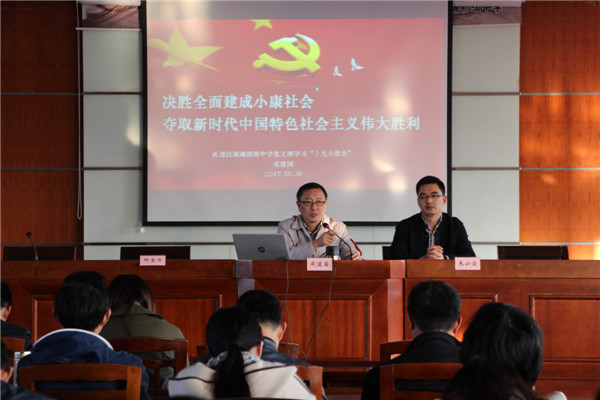 会议上,成建国校长首先对十九大报告中提出的新时代、新思想、新目标、新征程进行了深入阐述。然后针对“两个一百年”奋斗目标、“五位一体”总体布局、“四个全面”战略布局、五大发展理念、四个自信、国家治理体系和治理能力现代化、以人民为中心的发展思想等大会关键词进行了内涵剖析,对十九大会议精神进行了全面解读。
