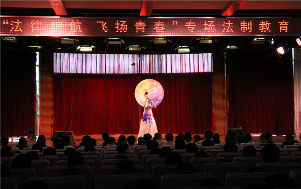 为进一步加强学生思想教育、法制教育的力度,增强学生遵纪守法观念,提高学生的法律意识,切实预防学生校内外的违法犯罪行为,维护良好的校园环境。11月15日下午,淹城初级中学邀请武进区凤凰艺术团来校进行“法律护航,青春飞扬”的法制教育专场文艺汇演。