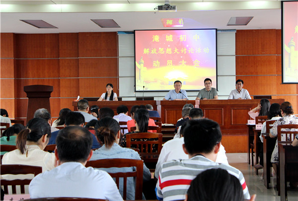 在动员会议上,成建国校长首先传达了上级关于解放思想大讨论的相关部署和精神。然后他强调,开展解放思想大讨论活动,是关系学校当前和长远发展的一项重点工作,全校教师要在思想上高度重视、认识上高度统一、行动上高度自觉。成建国校长指出:开展大讨论活动是通过思想创新、观念创新推动工作创新、机制创新,破解难题打开通道,全力落实强力突破,实现学校发展新突破。为确保全校的大讨论活动取得实效,结合学校工作实际,成校长要求必须全员参与、大力宣讲、深入推进并持之以恒。同时,要求全体教师能在学习讨论中加深对习近平新时代中国特色社会主义思想的理解,在工作实践中查找教育教学中存在的问题不足,在沟通交流中提升工作能力和水平,认真地把阻碍发展的难点问题、家长和学生关心的热点问题解决好。