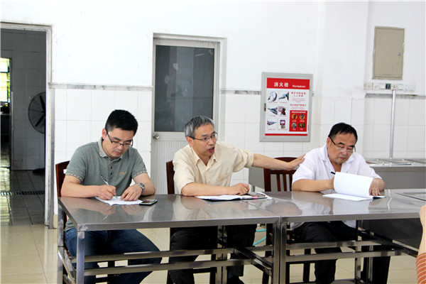 最后,副校长朱小波指出,学校食堂工作的关键在于安全,必须抓好“进货—加工—销售”三个关键环节;加强内部员工管理;树立强烈的责任心;增强服务意识,提高服务质量;多动脑思考,勤换菜品,为全校师生员工提供安全、卫生、健康的食品。