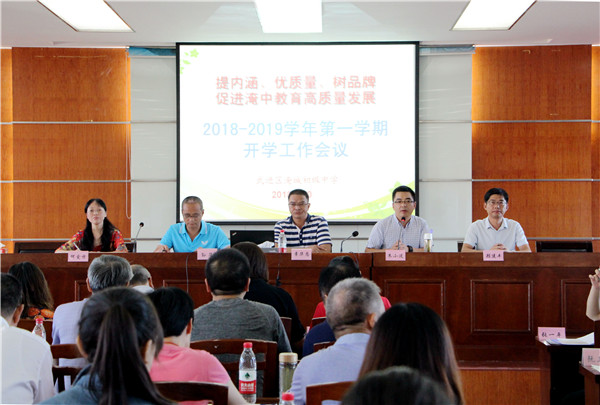 为了及时规划新学期的教育教学工作,绘就2018—2019学年的美好蓝图。2018年8月30日上午,淹城初中全体教师齐聚学校教师会议室召开新学期开学工作会议。校长章华忠、副校长孙华、朱小波、何爱方、顾建丰出席会议,会议由副校长朱小波主持。