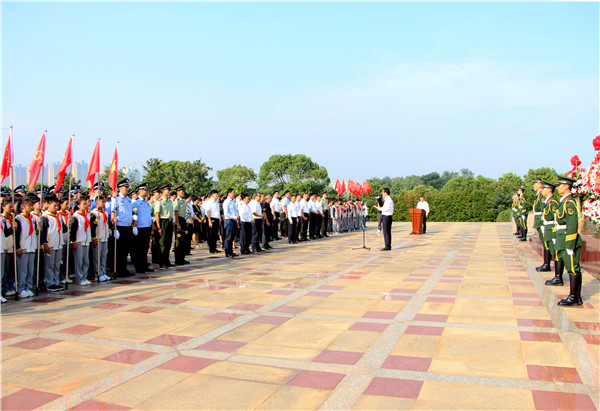 活动开始,全体参加公祭人员面向纪念碑肃穆站立。戴士福区长向烈士纪念碑行鞠躬礼,宣布烈士公祭活动开始。全场奏唱庄重的《中华人民共和国国歌》,史志军书记宣读祭文。一曲《我们是共产主义接班人》,歌声铿锵有力、节奏鲜明、气概豪迈,展示了淹中少先队员良好的精神面貌。随后,伴随着《献花曲》激昂深情的旋律,武警战士向烈士献花篮。区领导依次缓缓来到纪念碑前,庄重地整理挽联。随后,全体人员绕纪念碑一圈,向烈士纪念碑献花。