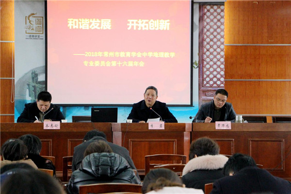 2018年常州市教育学会中学地理教学专业委员会第十六届年会于2019年1月3日在武进区淹城初级中学隆重举行。来自全市各县区教研员、初高中学校的地理教研组组长及骨干教师70余人与会,会议由市教科院地理教研员朱志刚老师主持。