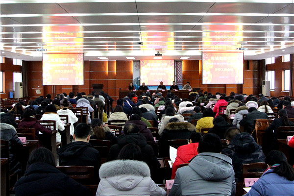 怀揣新梦想,淹城初级中学又迎来了一个新的学期。为确保开学工作的顺利进行,2月15日上午8:30,淹城初级中学全体教职员工汇聚一堂,在教师会议室召开了2018——2019学年第二学期开学工作会议。